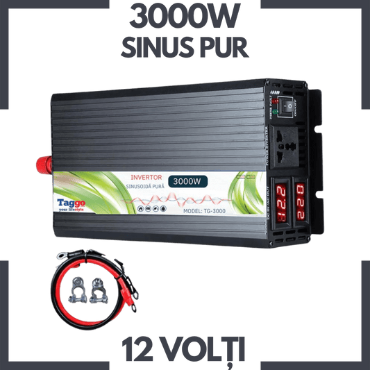 Invertor 3000W 12V – 220 V auto si panouri solare SINUS PUR, unda pura rulota, casa, cabana