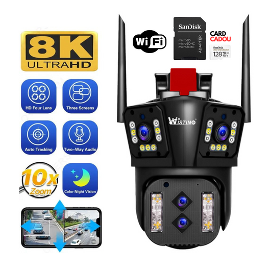 Camera de supraveghere Zoom 10X, WIFI 8K, 16MP, 4 lentile, Control din aplicatie, Comunicare bidirectionala, Urmarire automata