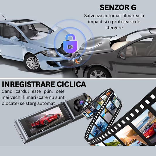 Camera Auto V55PRO 4K + camera spate 1080P, WiFi, WDR, Viziune nocturna