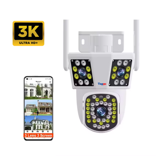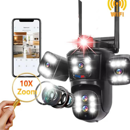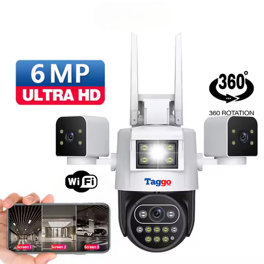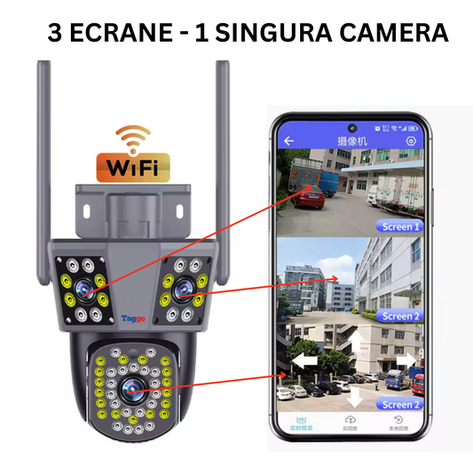 Camera de Supraveghere Taggo, Conexiune WIFI, 6MP, ZOOM 10X, 3 lentile, Control din aplicatie, Rezistenta la apa