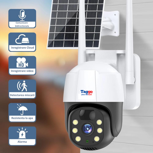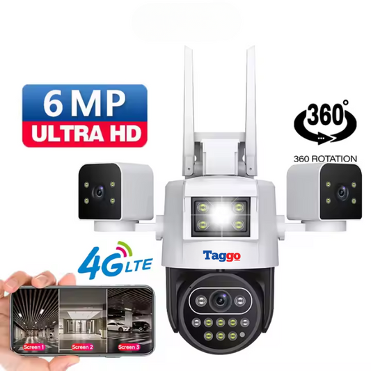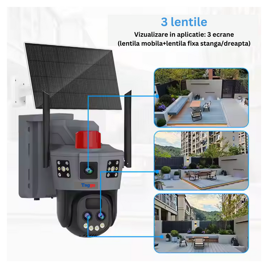 Camera de Supraveghere Taggo, Conexiune 4G, 6MP, ZOOM 10X, 3 lentile, Control din aplicatie, Rezistenta la apa