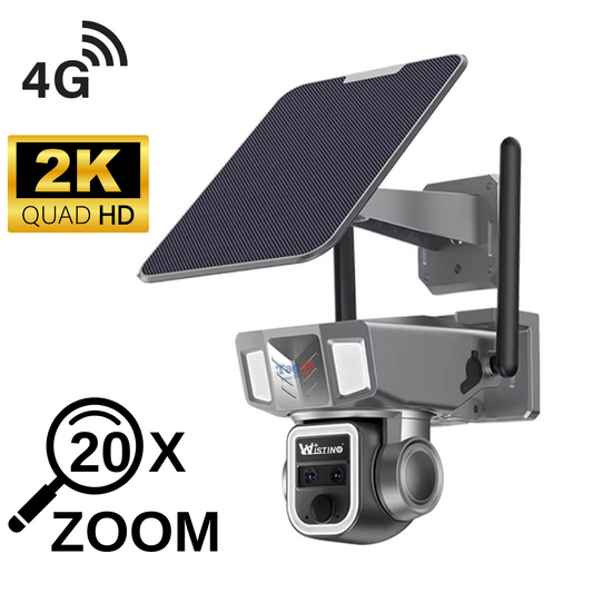 Camera Supraveghere 4G 2K Ultra HD, Duble Lens, 20X Optical ZOOM, Incarcare Solara, Rotire Din Aplicatie, Rezistenta La Apa IP 66