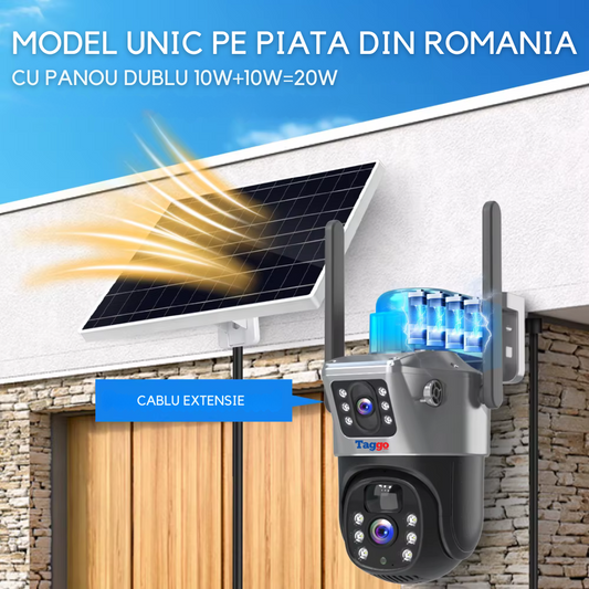 Camera Supraveghere 4G 3K Ultra HD 10X ZOOM, Dual Camera, Incarcare Solara, Rotire Din Aplicatie, Rezistenta La Apa IP 66