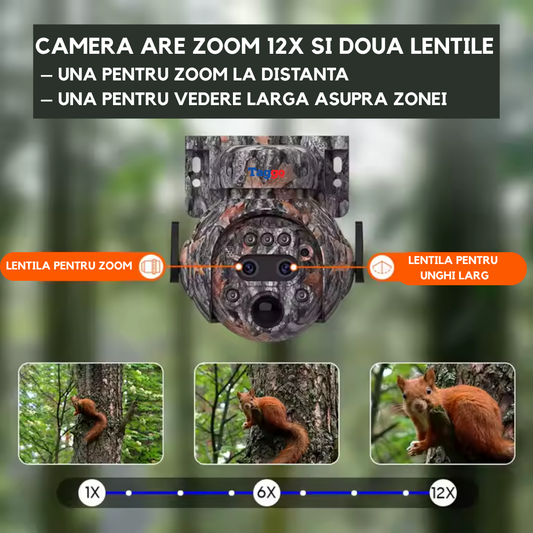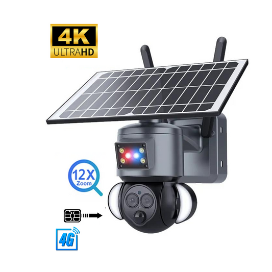 Camera Supraveghere 4G 4K HD, Dual Lens, 12X ZOOM, Incarcare Solara, Rotire Din Aplicatie, Rezistenta La Apa IP 66