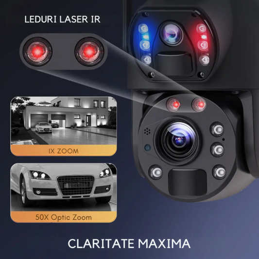 Camera Supraveghere 4G 4K Ultra HD 50X Optical ZOOM, Dual lens, Incarcare Solara Panou, Rotire Din Aplicatie, Rezistenta La Apa IP 66