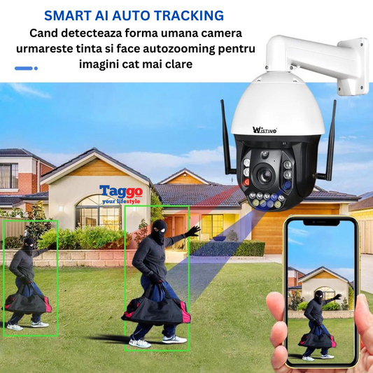 Camera Supraveghere 4G 4K Ultra HD 36X Optical ZOOM, Rotire Din Aplicatie, Rezistenta La Apa IP 66