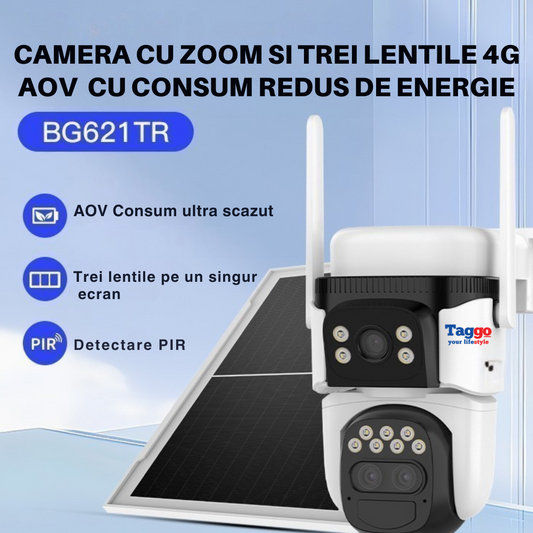 Camera Supraveghere 4G si WIFI 2K Ultra HD, Triple Lens, 10X Optical ZOOM, Incarcare Solara, Rotire Din Aplicatie, Rezistenta La Apa IP 66