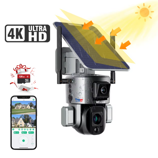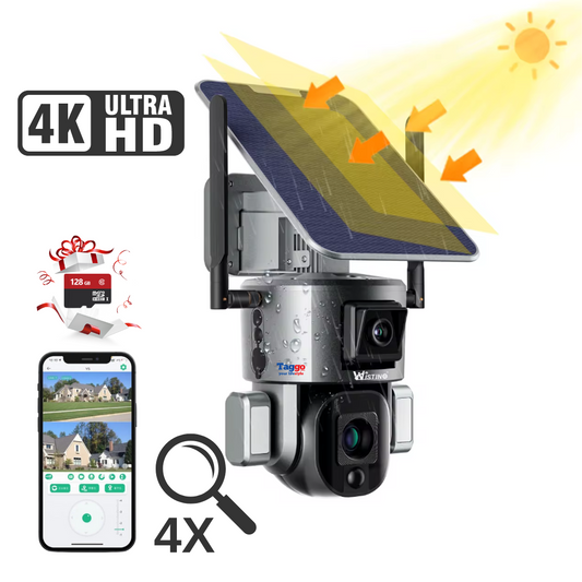 Camera Supraveghere cu Panou Solar si Conexiune WIFI, Rezolutie 6K ULTRA HD, Zoom Optic 100X, 2 Lentile