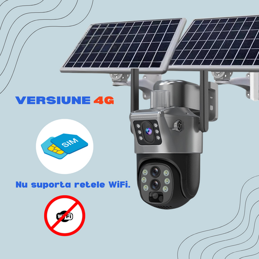 Camera Supraveghere cu Panou Solar si Cartela SIM 4G, Rezolutie 6K ULTRA HD, Zoom Optic 100X, 2 Lentile