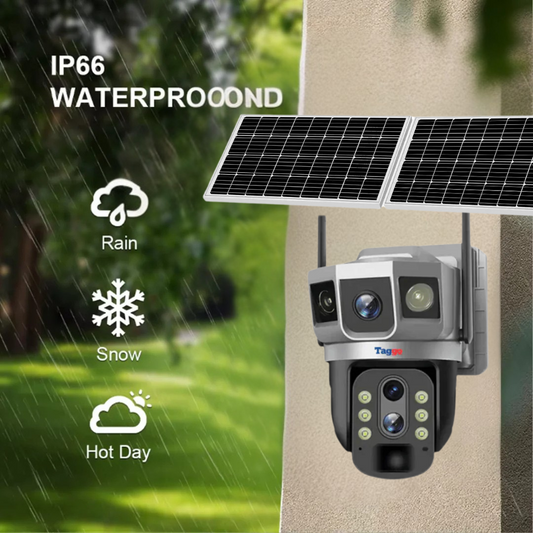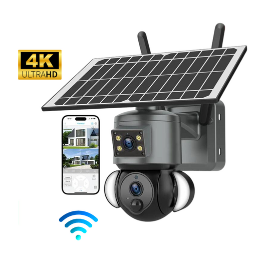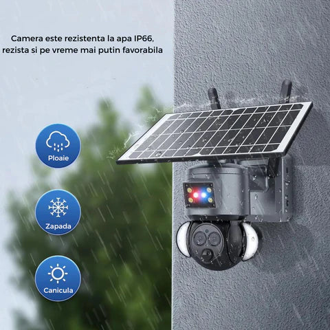 Camera Supraveghere WiFi 4K HD, Dual Lens, 12X ZOOM, Incarcare Solara, Rotire Din Aplicatie, Rezistenta La Apa IP 66