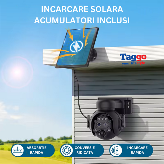 Camera Supraveghere WIFI 4K Ultra HD, Dual Camera 8MP, Incarcare Solara, Rotire Din Aplicatie, Rezistenta La Apa IP 66, Card de 64 GB