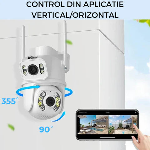 Camera WIFI de supraveghere 4K, 8MP, 2 lentile, Control din aplicatie, Urmarire automata, Rezistenta la apa IP66