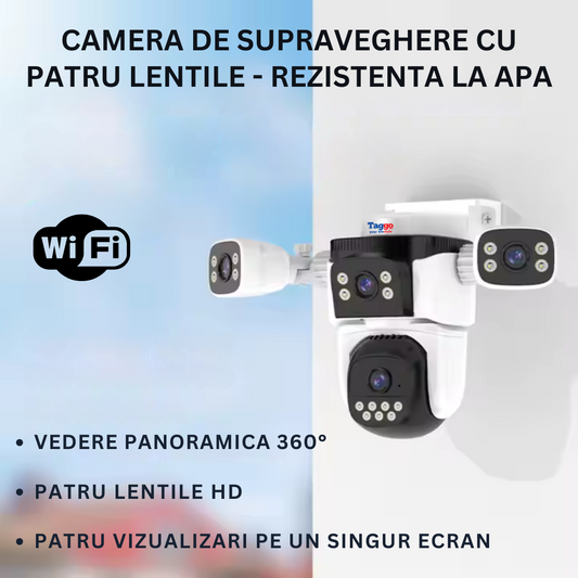 Camera supraveghere WiFi, Audio Bidirectional, 16MP, Patru Lentile HD, Vedere panoramica 360°, PTZ