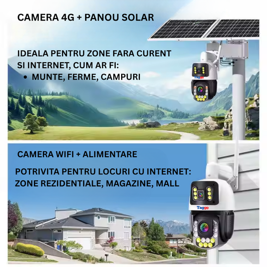 Camera Supraveghere WIFI 4K Ultra HD 50X ZOOM, Dual Camera, Incarcare Solara, Rotire Din Aplicatie, Rezistenta La Apa IP 66