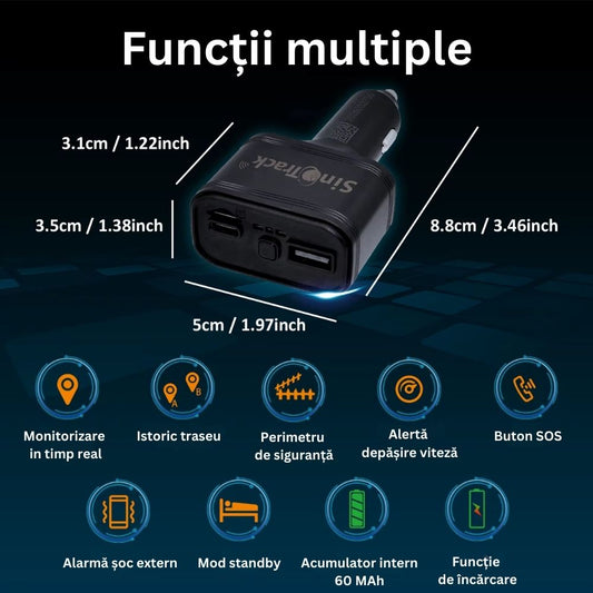 Incarcator auto / Tracker GPS 4G cu incarcare rapida si localizare in timp real, interfata USB dubla, buton SOS, antifurt