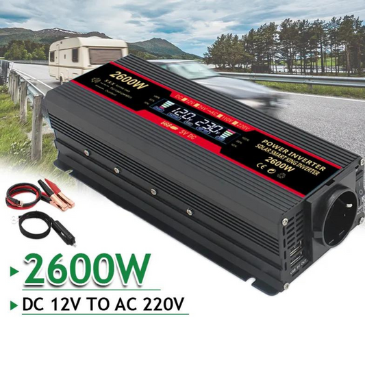 Invertor 12v 220v 2600w Unda modificata cu Display, 1 Iesire AC Protectie Scurtcircuit 2 USB, Adaptor Auto Inclus