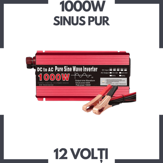 Invertor 1000W 12V – 220 V auto si panouri solare SINUS PUR, unda pura rulota, casa, cabana