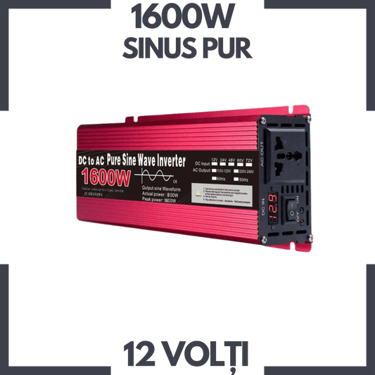 Invertor 1600W 12V – 220 V auto si panouri solare SINUS PUR, unda pura rulota, casa, cabana