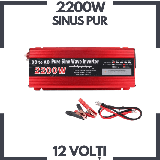 Invertor 2200W 12V – 220 V auto si panouri solare SINUS PUR, unda pura rulota, casa, cabana