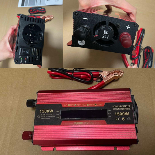 Invertor 24v 220v 1500w Unda Modificata cu Display, 1 Iesire AC Protectie Scurtcircuit 2 USB, Adaptor Auto Inclus