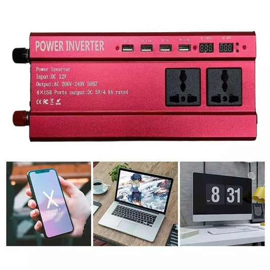 Invertor 12v 220v 2000w cu Display, 3 Iesiri AC Protectie Scurtcircuit 4 USB, Adaptor Auto Inclus