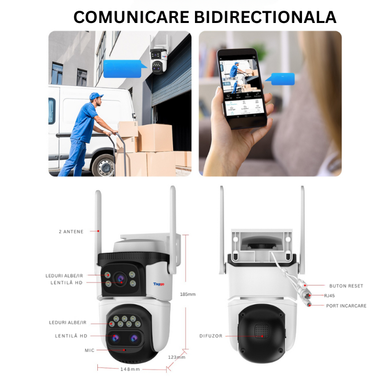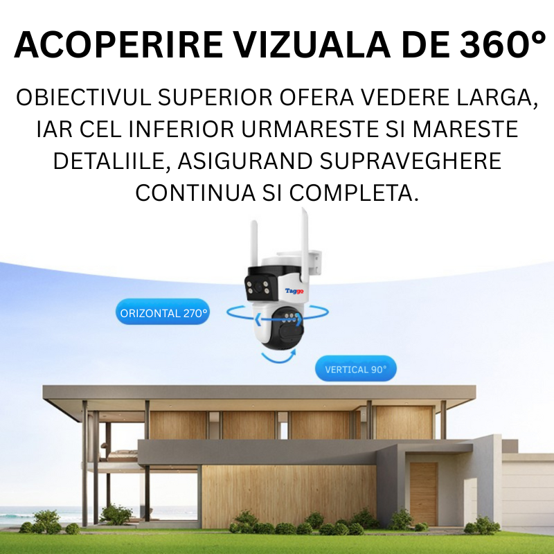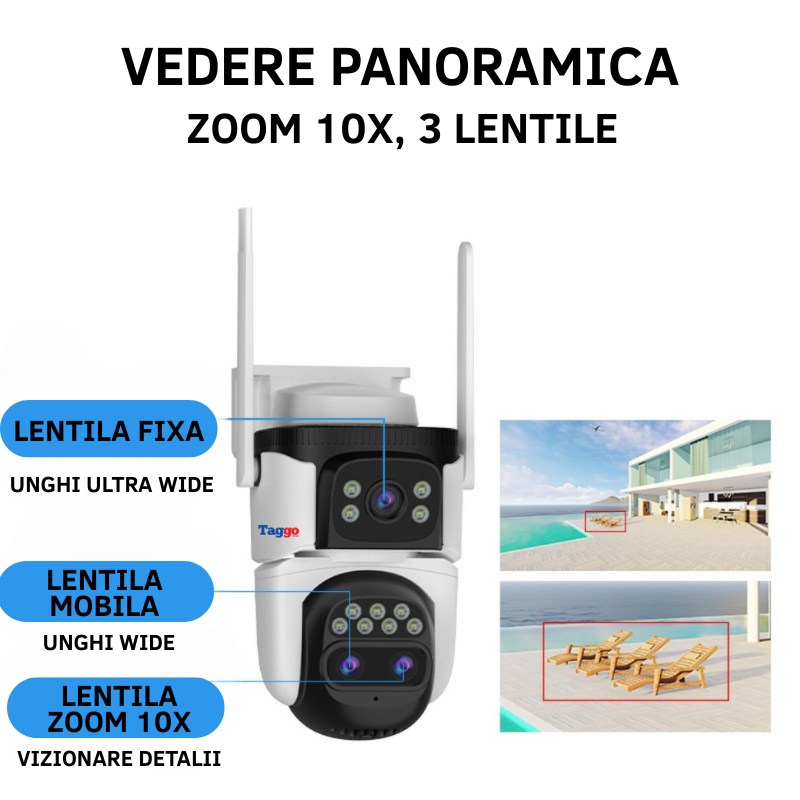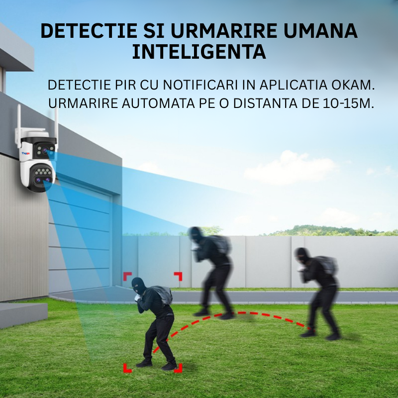 Camera de Supraveghere WIFI, 3 lentile, 6K 12MP, Auto Zooming 10x hybrid, Notificari, Control din Aplicatie, Urmarire Automata