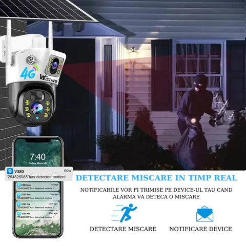 📸 Camera Supraveghere 4G 4K Ultra HD, Dual Camera 8MP, Incarcare Solara, Rotire Din Aplicatie, IP66
