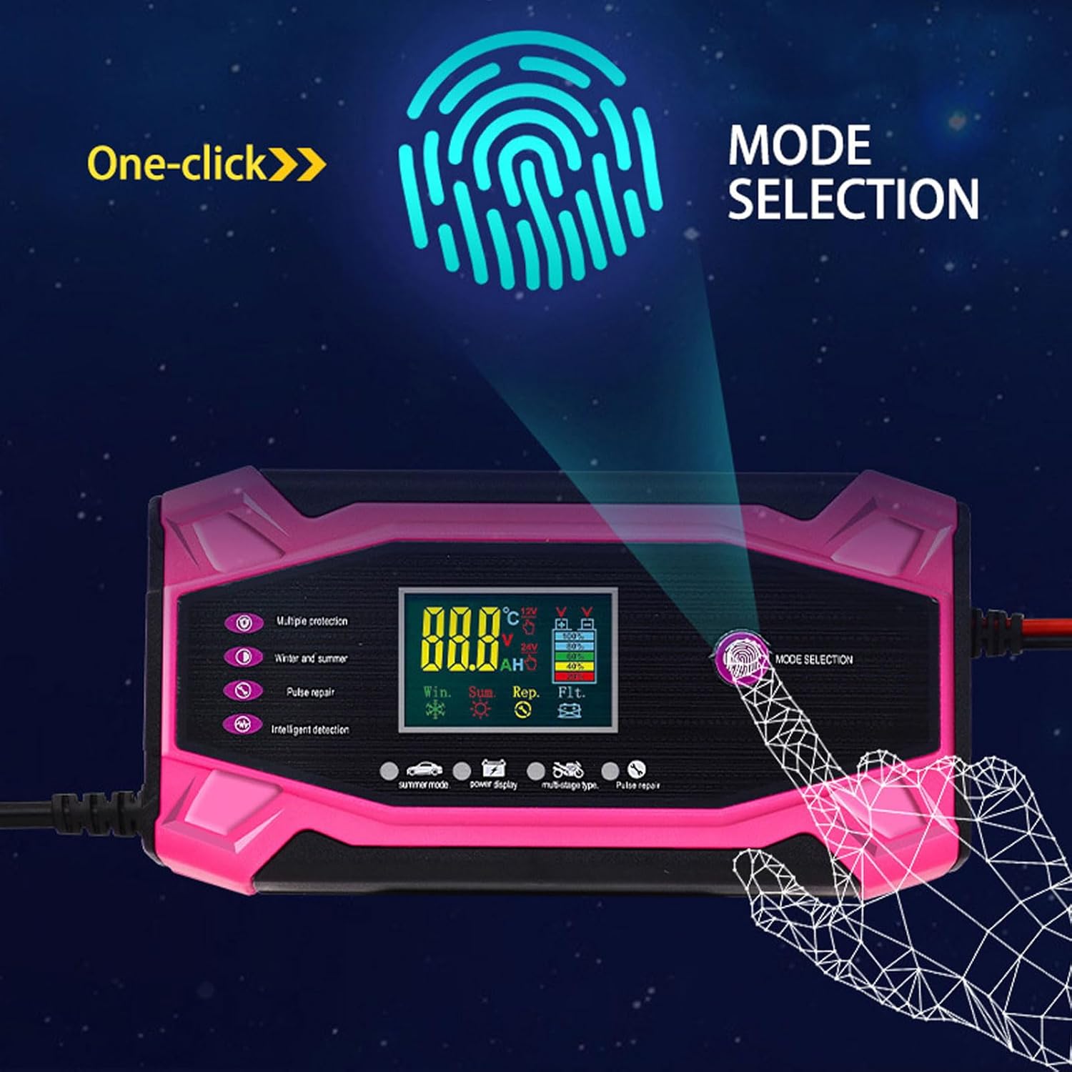 Compatibilitate Duala: Suporta atat baterii de 12V la 10A, cat si de 24V la 5A, ceea ce il face versatil si potrivit pentru o gama larga de vehicule, inclusiv autoturisme, motociclete, camioane si alte echipamente electrice.