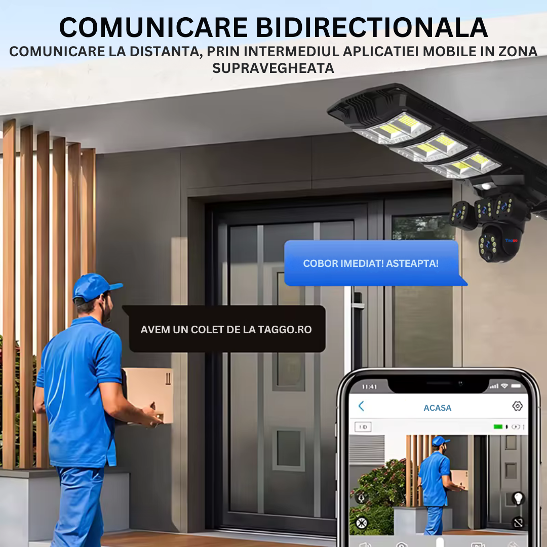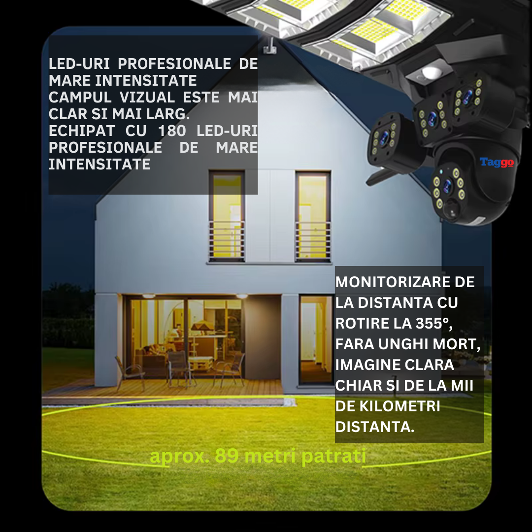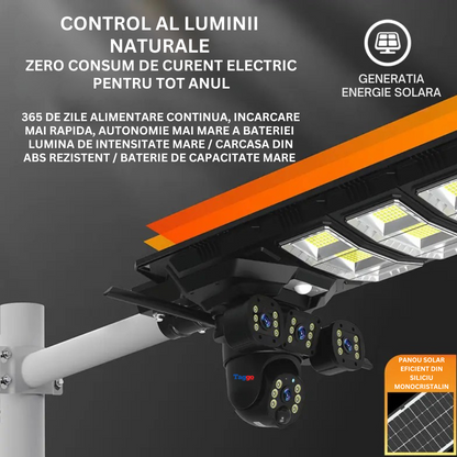Lampa stradala cu camera 4G si incarcare solara, 9MP, 20000mAh, Taggo Pro, viziune nocturna, IP66