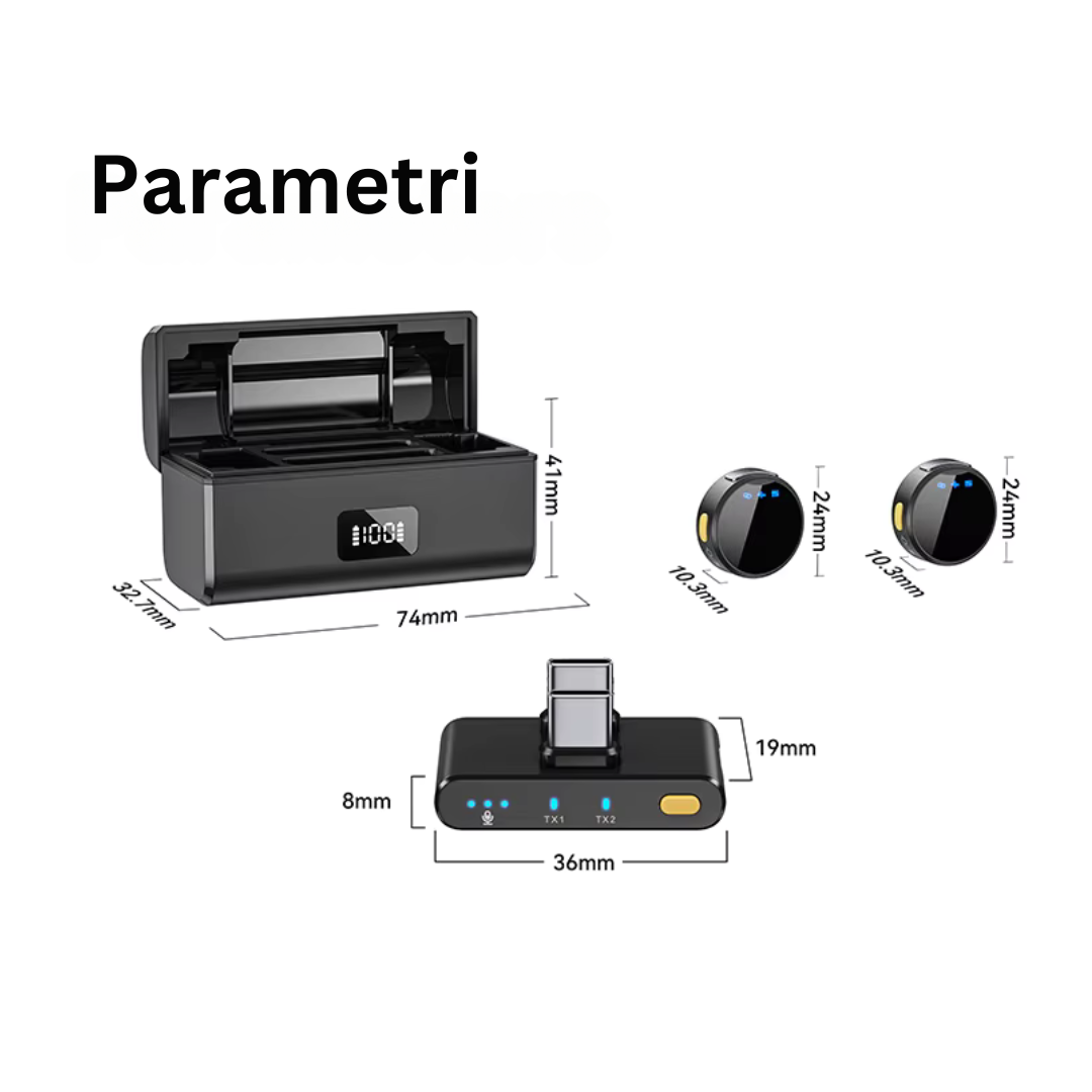 Lavaliera Wireless 3 in 1 – Microfon Magnetic Portabil pentru Telefon Mobil, Vlog si Streaming