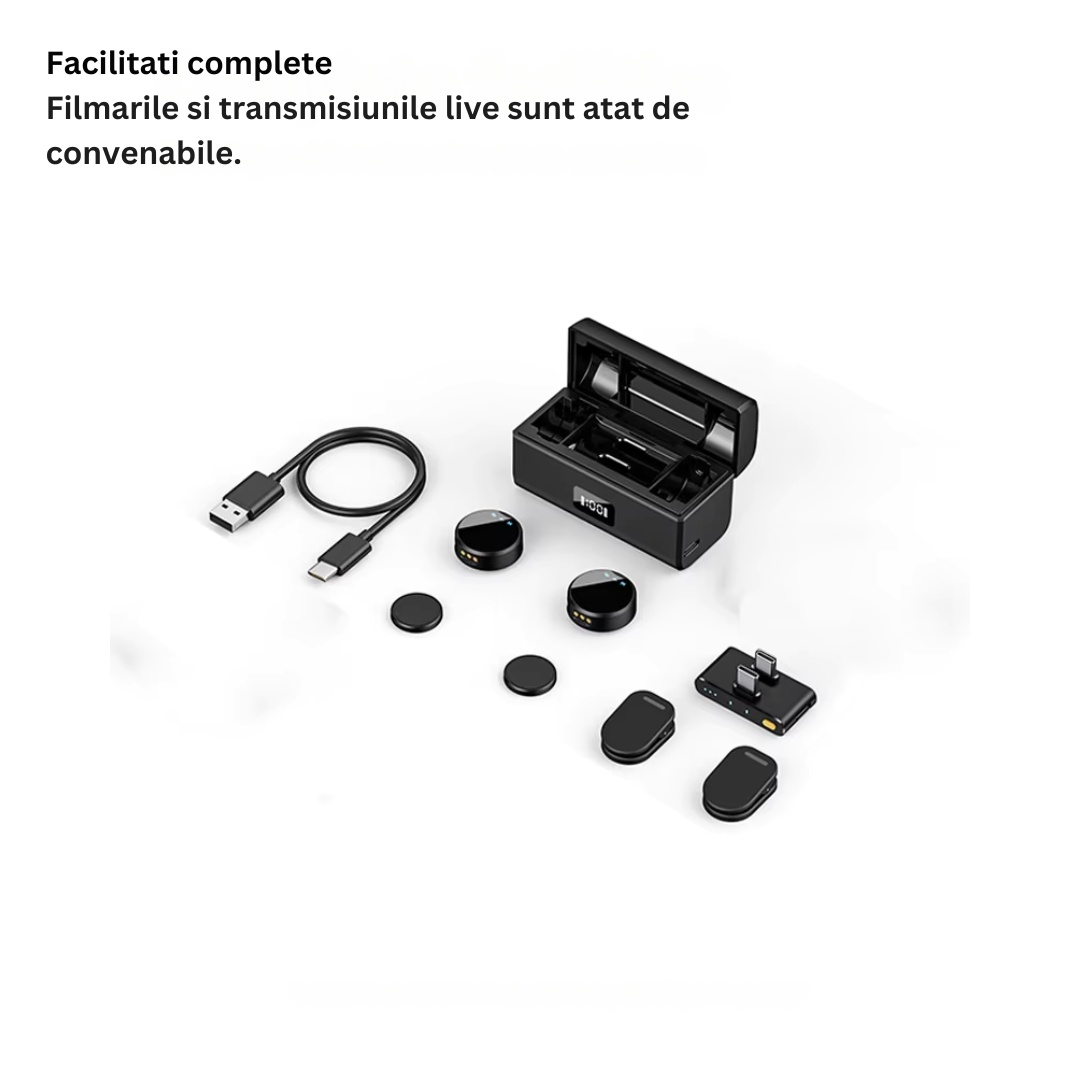 Transforma modul in care inregistrezi si faci live-uri cu microfonul wireless M92 de ultima generatie. Acest model 3 in 1 cu prindere magnetica este perfect pentru vloggeri, creatori de continut, interviuri, podcasturi, cursuri online sau evenimente live.
