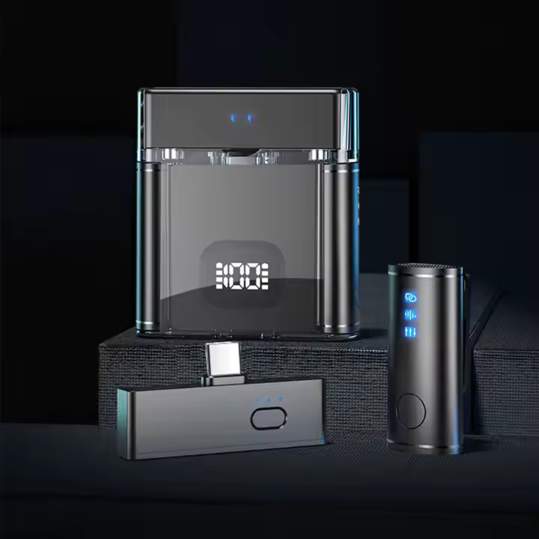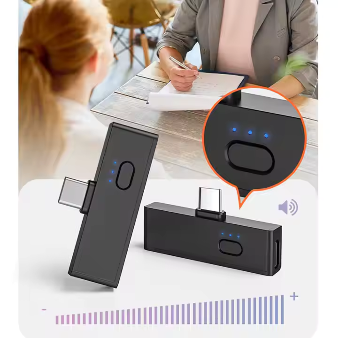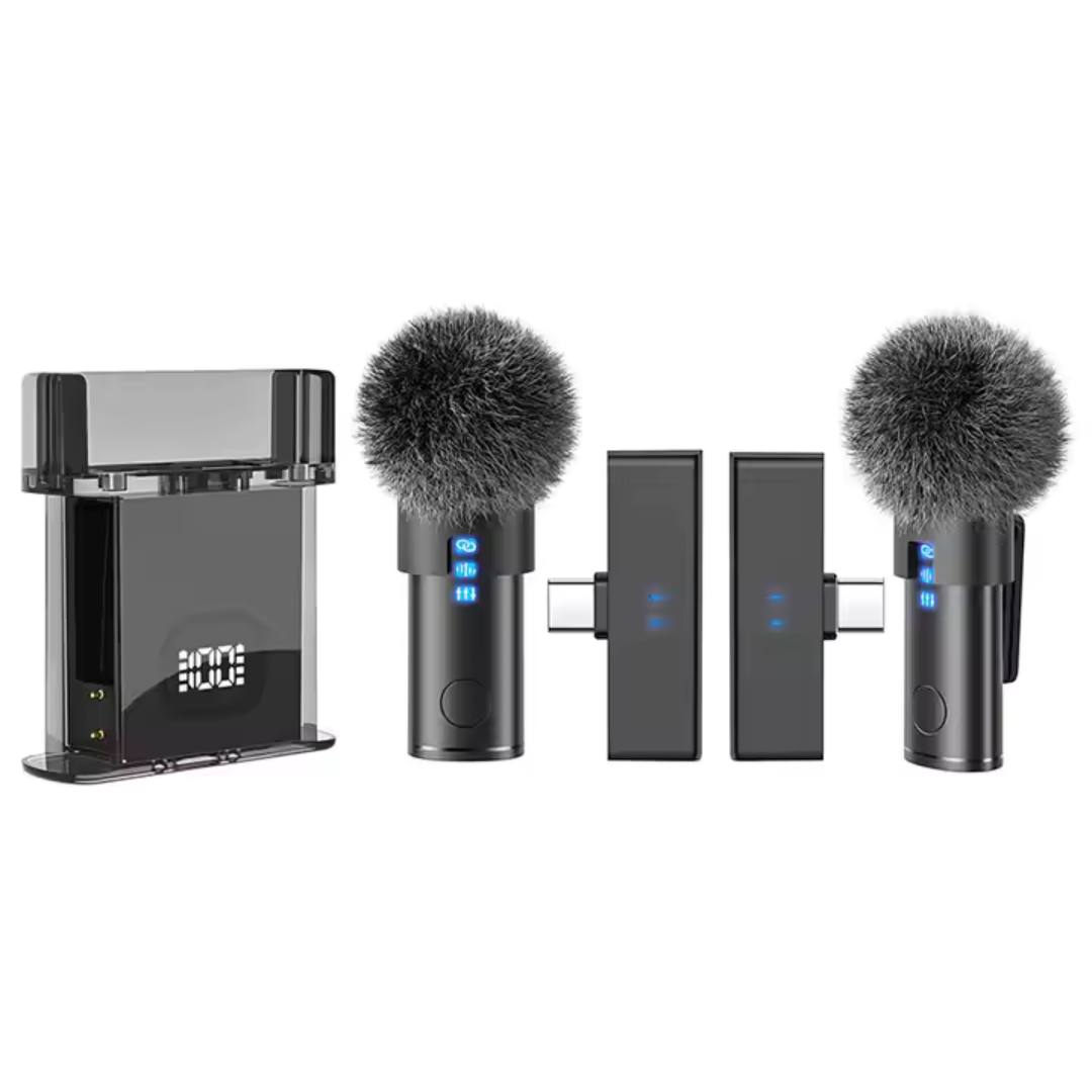 Obtine sunet clar si profesional cu microfonul wireless M5 2.4G, perfect pentru vlogging, interviuri, TikTok, YouTube, live streaming si prezentari.